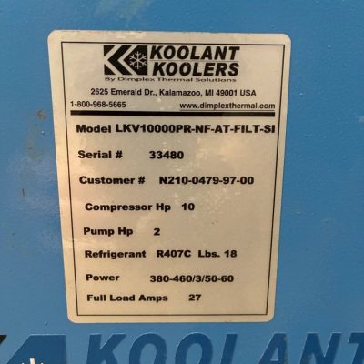 10 Ton Koolant Koolers LKV10000PR-NF-AT-FILT-SI Chiller