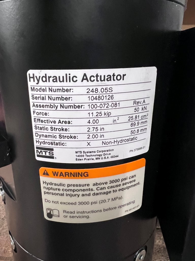 11.25KIP (50 kN) MTS 248.05S Hydraulic Actuator