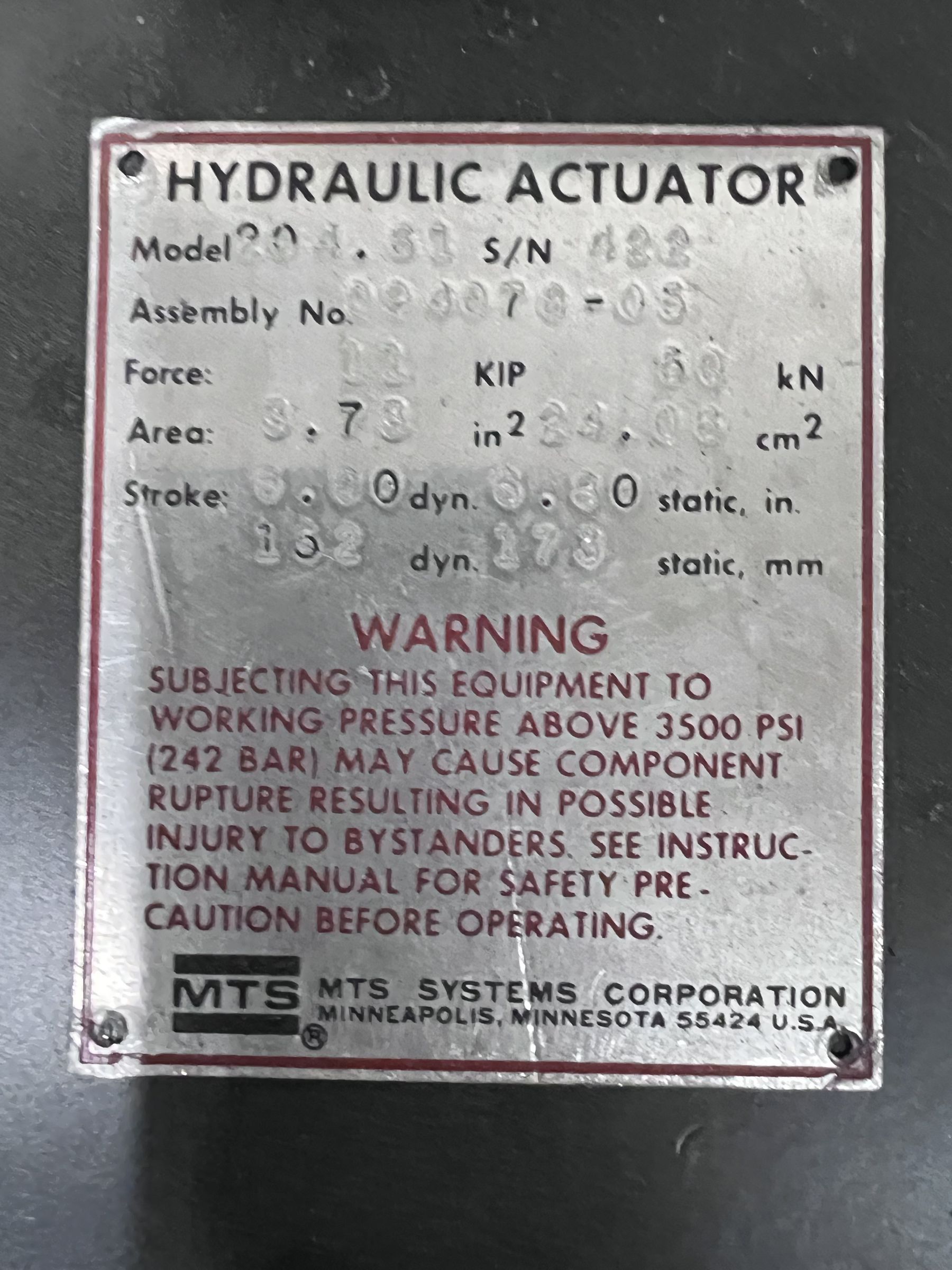 11KIP (50kN) MTS Model 204.61 Hydraulic Actuator