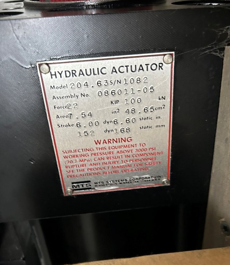 22KIP (100kN) MTS Model 204.63 Hydraulic Actuator