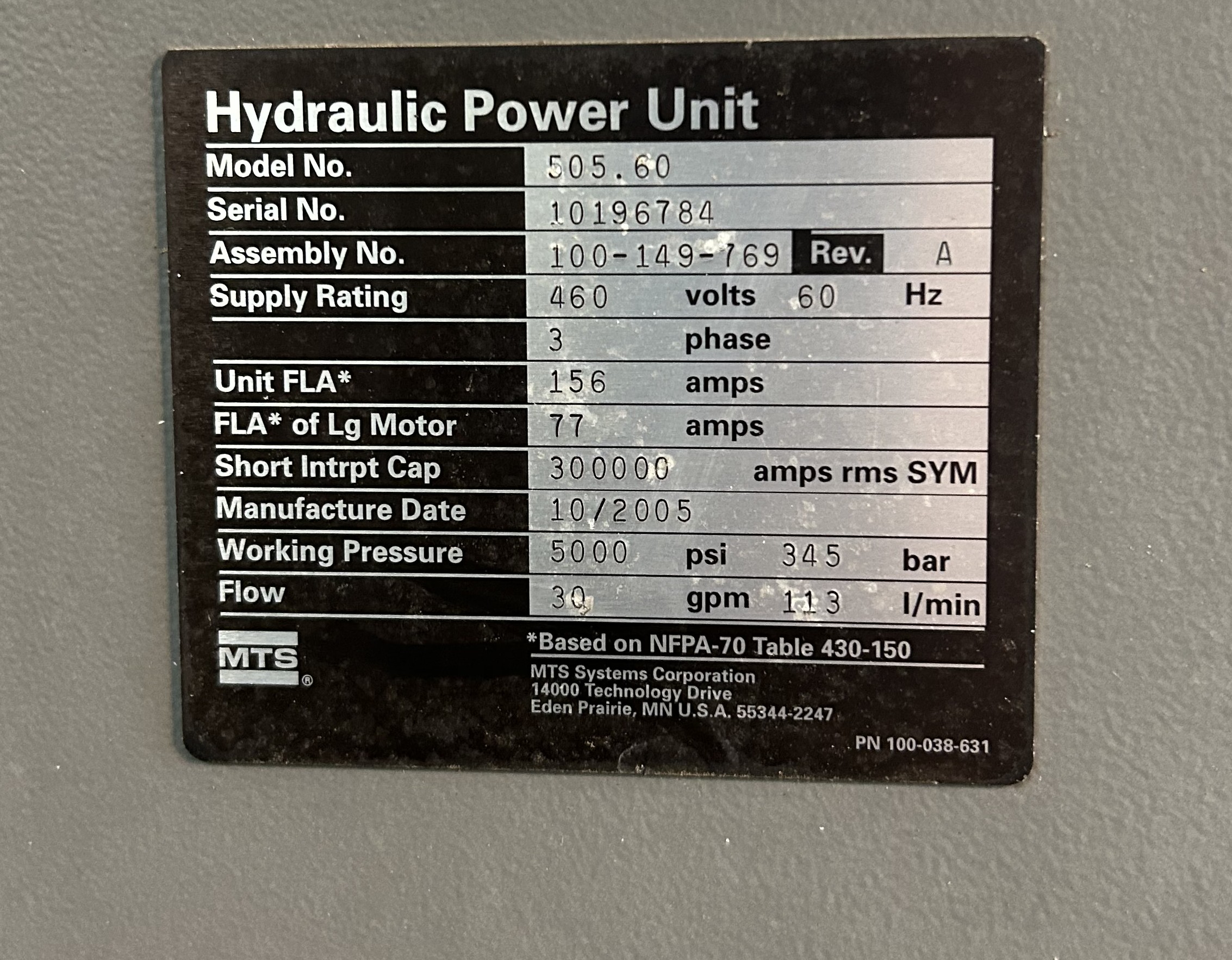Voltage Requirements (V, Hz, Ph, A): 460, 60, 3, 156